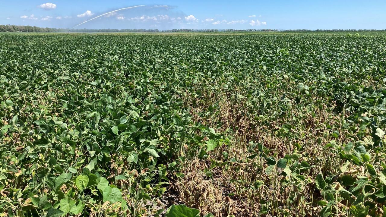 « Ça, c’est l’effet du sel. Il remonte par capillarité et brule la plante », exlique Stefano Calderoni qui se désole devant les champs de soja d’un de ses colleghi. « L’absence de pluie accentua la remontée du sel dans le terrain. S’il avait plu, 100 mm come les autres années, ce pénomène ne serait pas survenu. Là-bas en revanche, la tache que l’on voit est Due au fait qu’ils ont irrigué sans controller la salinité de l’eau : ils ont brûlé les champs eux-mêmes. Mais les plants seritan mortes sans eau! »